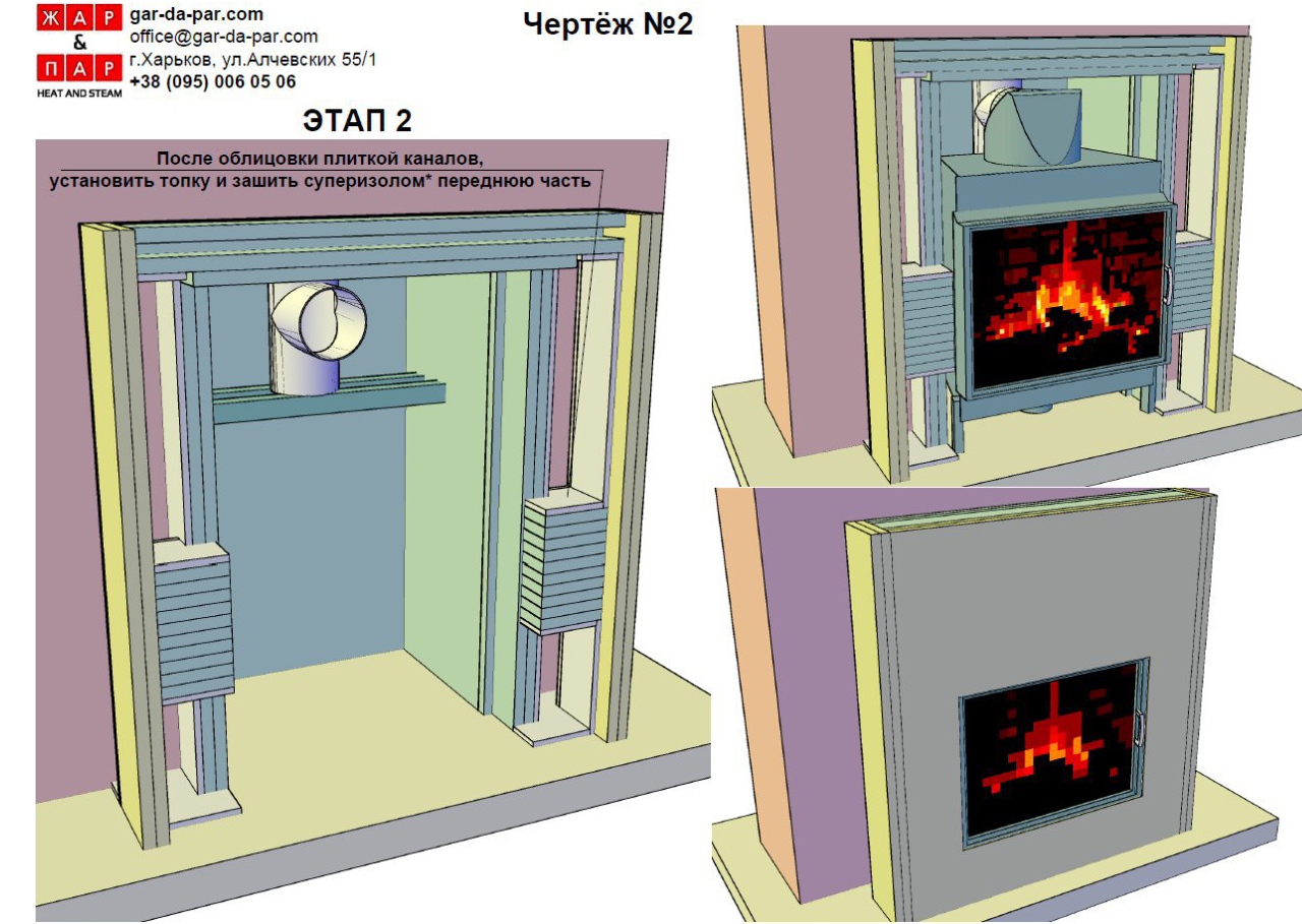 - Розробка креслень та розрахунок матеріалів для монтажу вашої печі або каміна, якщо у вас є час і можливість будувати самостійно, плюс технічна підтримка установки нашим інженером. Зазвичай комплектація.